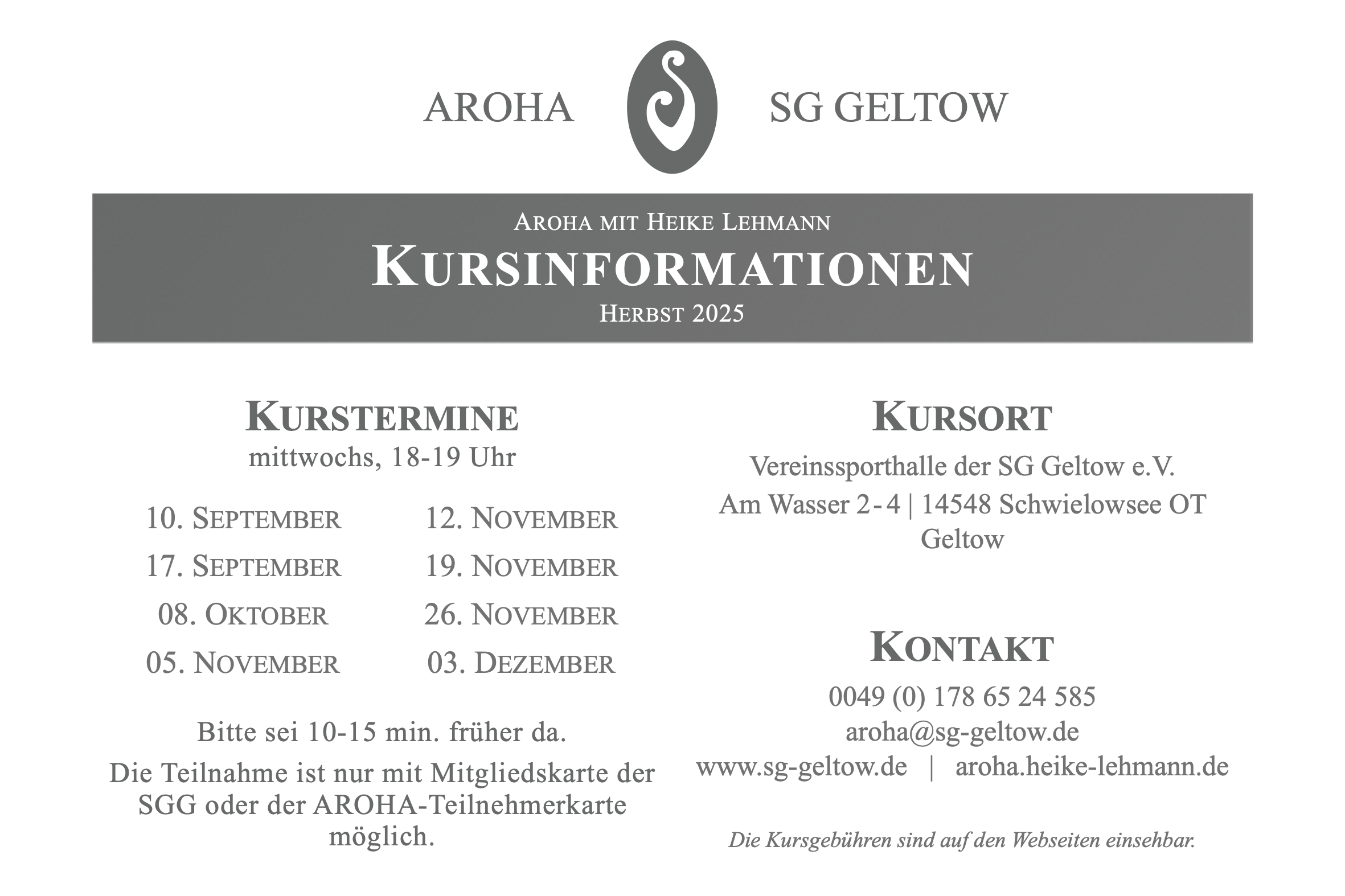 Der aktuelle Kurs findet an folgenden Terminen st [...]